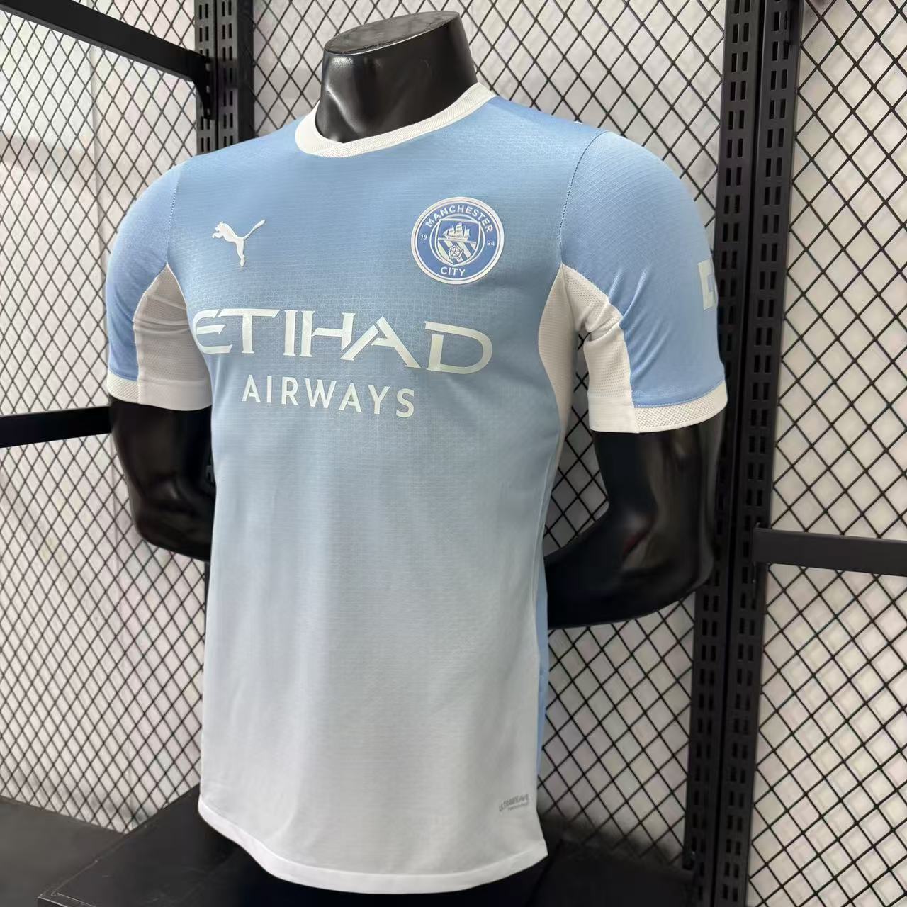 הצבע התכלת האייקוני משתלב עם גימור לבן יוקרתי, לוגו המועדון בגאווה וספונסר Etihad בעיצוב חד ומודרני – בדיוק כמו האלופה האנגלית.