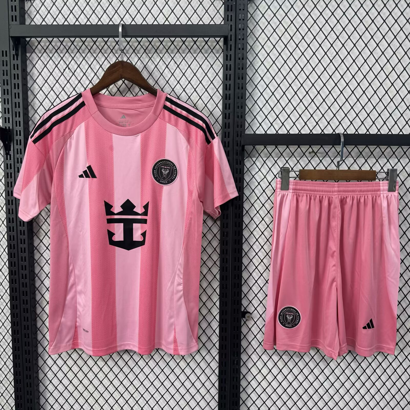 חליפת ילדים אינטר מיאמי בית 25/26 – חולצה ומכנס בגוון ורוד-שחור איקוני כמו מסי בעצמו ⚽🌴💗