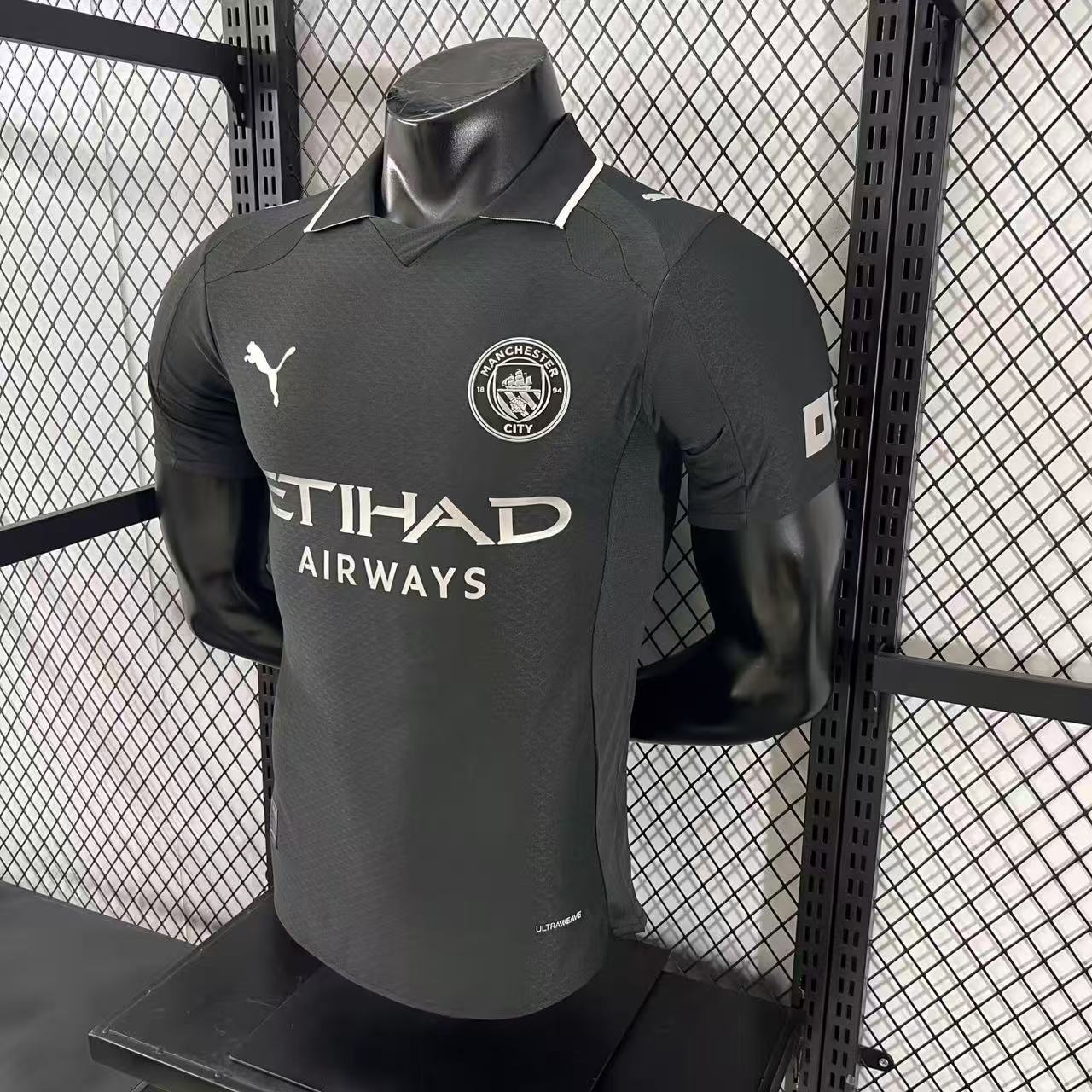 העיצוב החדש של מנצ’סטר סיטי לעונת 2025/26 מביא שילוב נדיר של יוקרה ופשטות: שחור מלא, טקסטורה עדינה ולוגואים בצבע כסף שנותנים וייב חד ומקצועי.